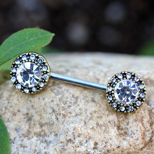 Perfect for nipple piercings seeking multiple CZ beauty, halo sparkle, or adding vintage glamour. This nipple bar is the kind of piece that becomes a luxurious favorite!