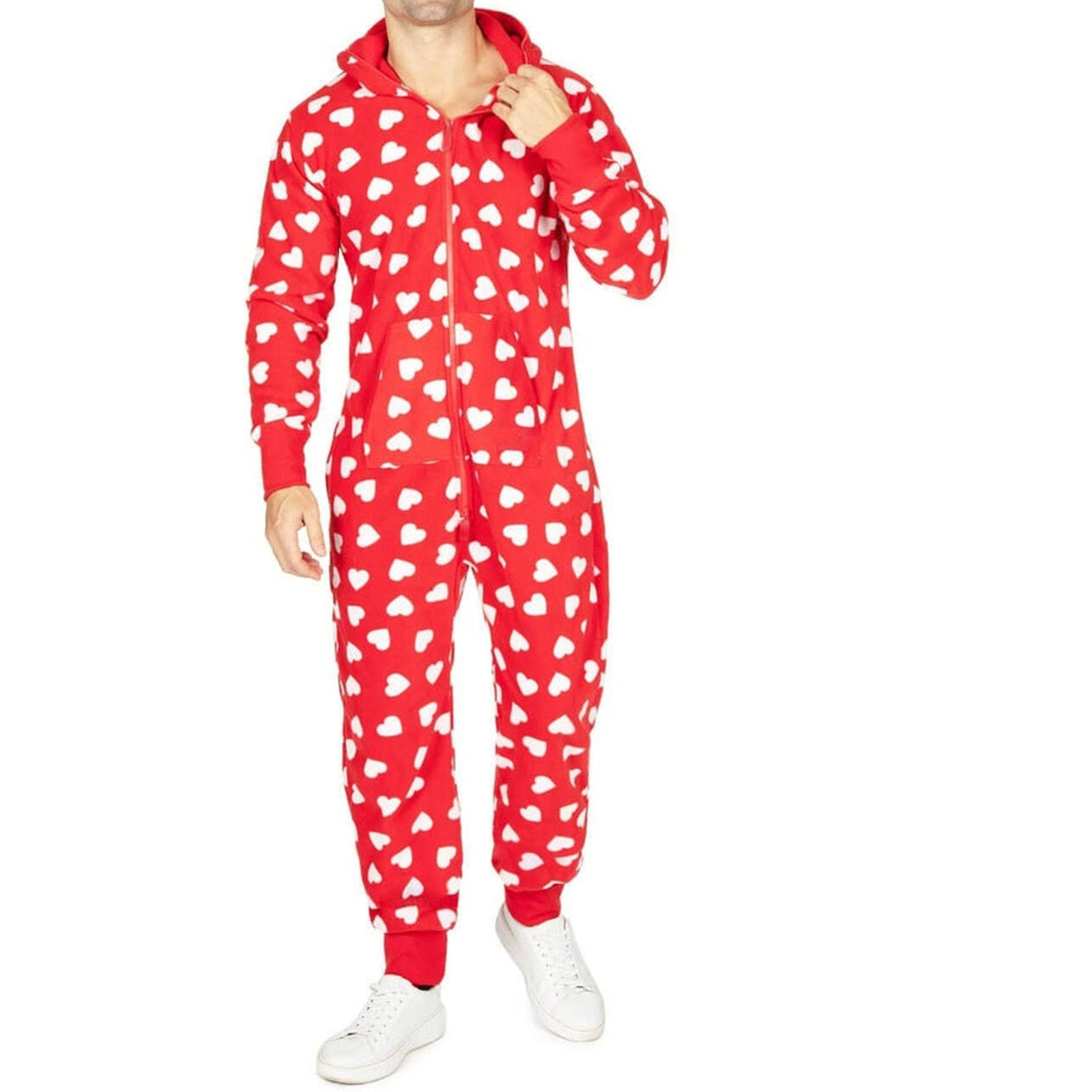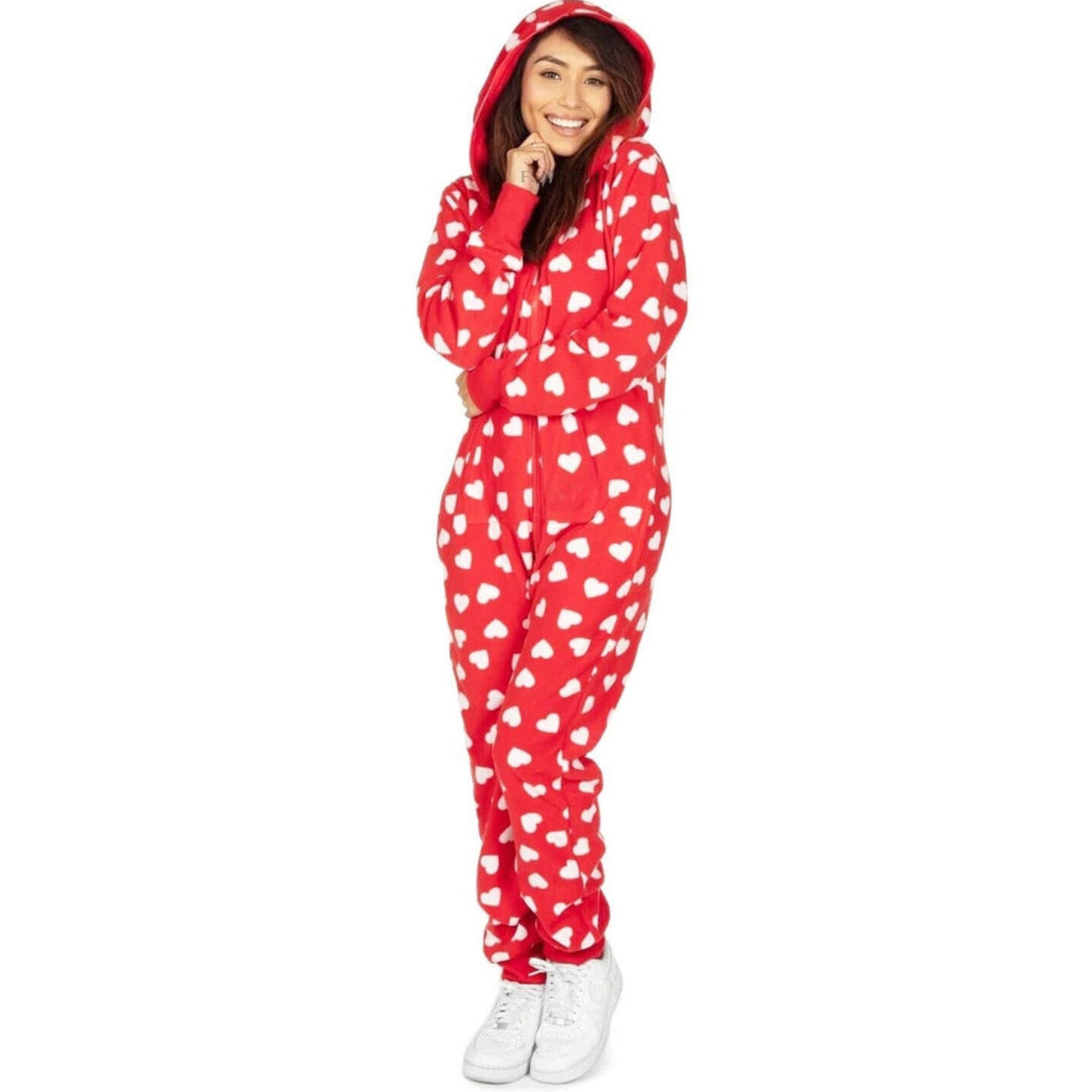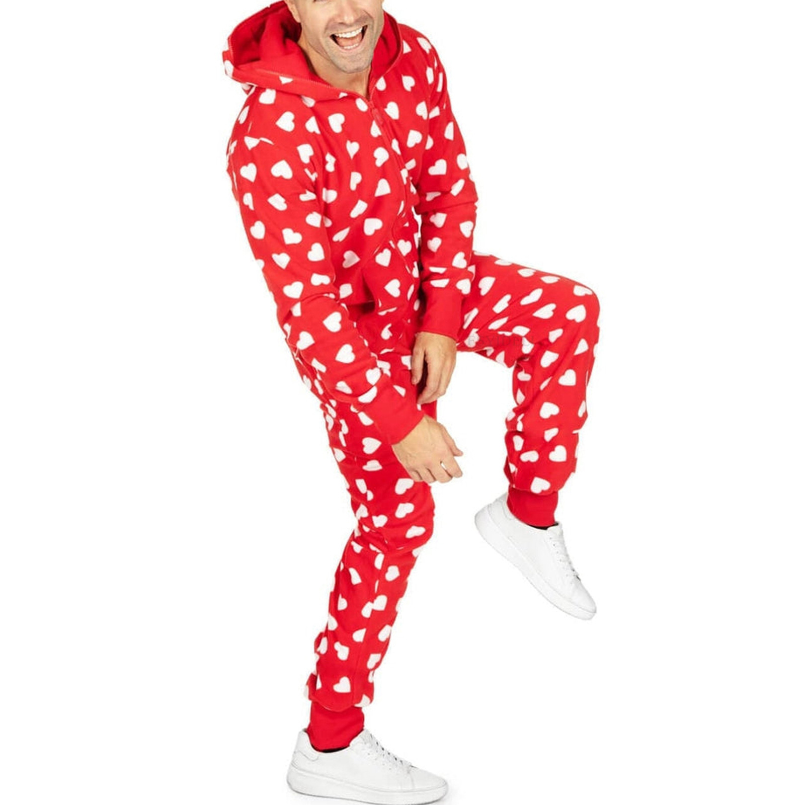 Christmas Autumn And Winter Hooded Love Print Onesie Pajamas