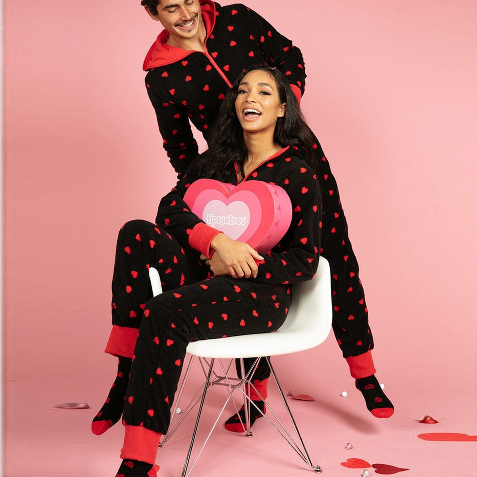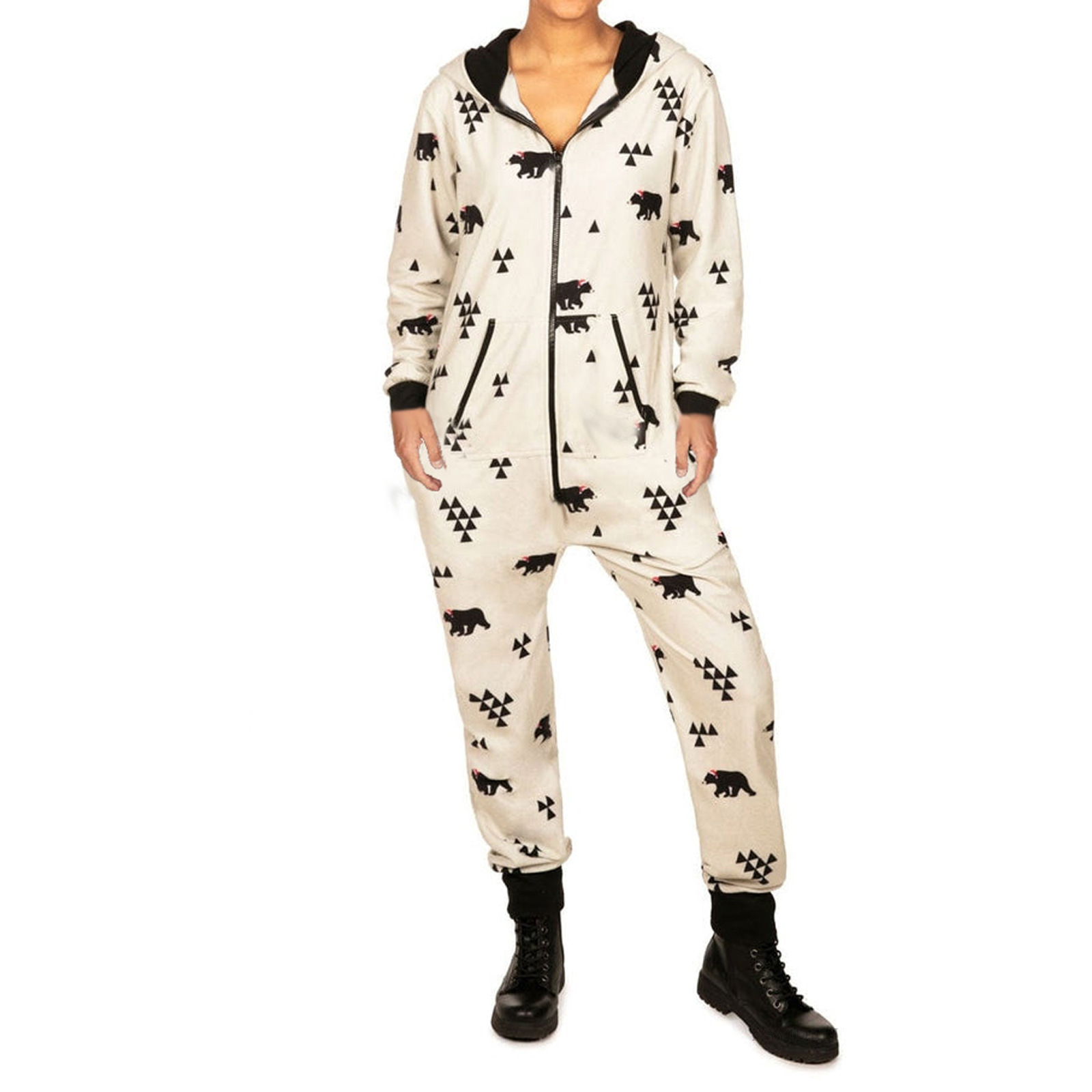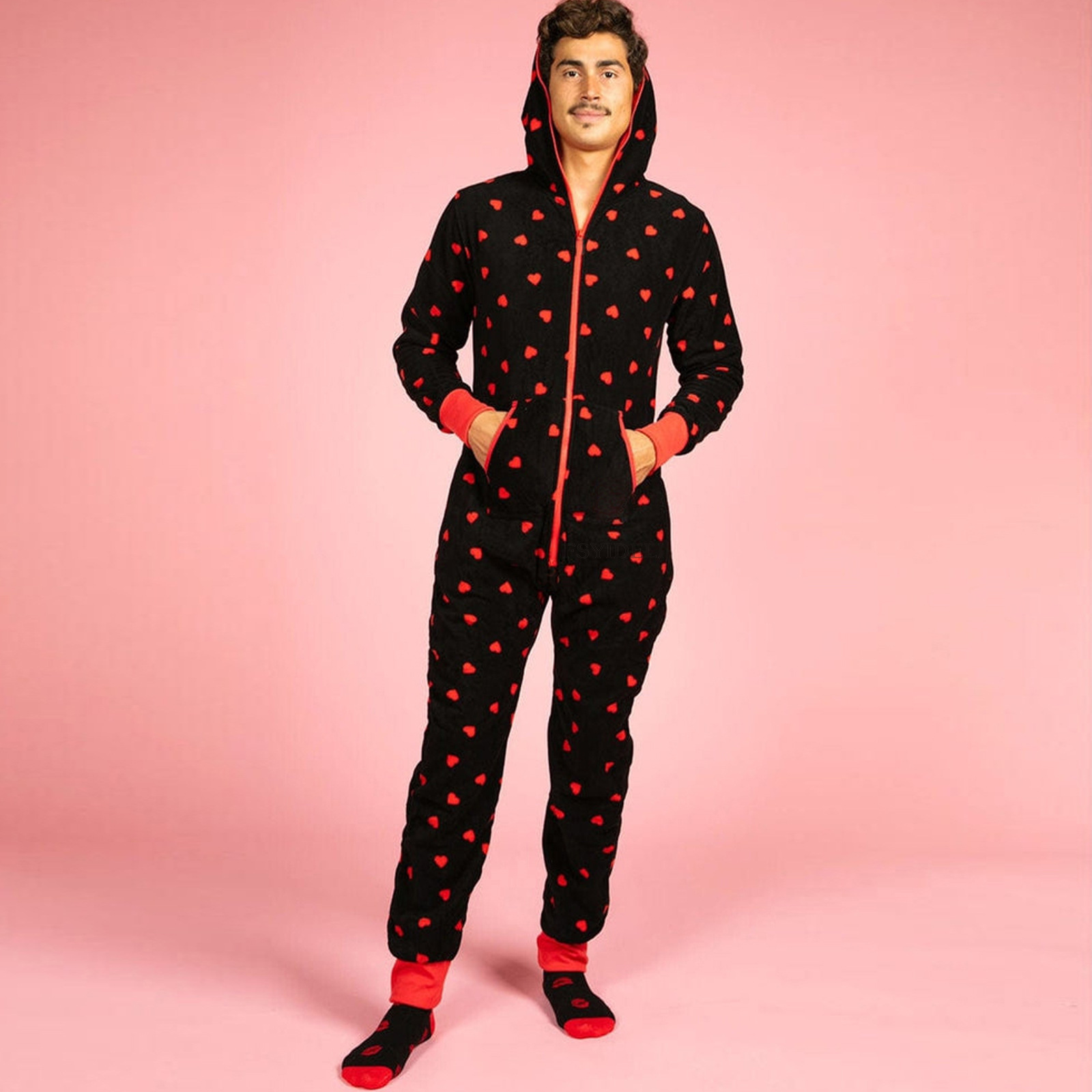 Christmas Autumn And Winter Hooded Love Print Onesie Pajamas