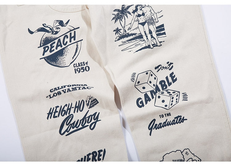Sweatpants Funny Vintage Print Pants Men High Street Elastic Waist Fashion Baggy Hip Hop Style Men Streetwear Autumn